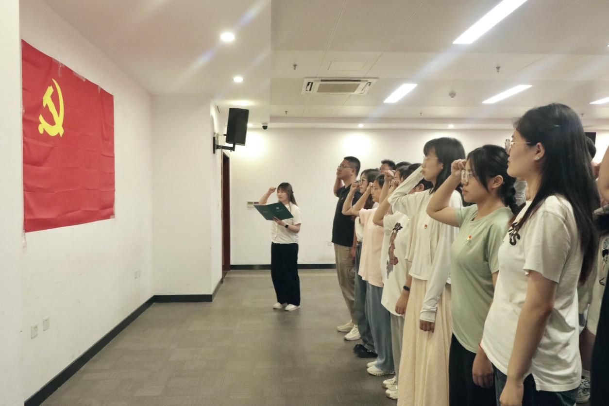 在学院研究生专硕第一党支部书记陈欣紫的带领下,全体毕业生党员面向党旗重温入党誓词。一声声“我志愿加入中国共产党”的誓言在会议室回荡,展现了毕业生党员坚定信仰、接续奋斗的决心。