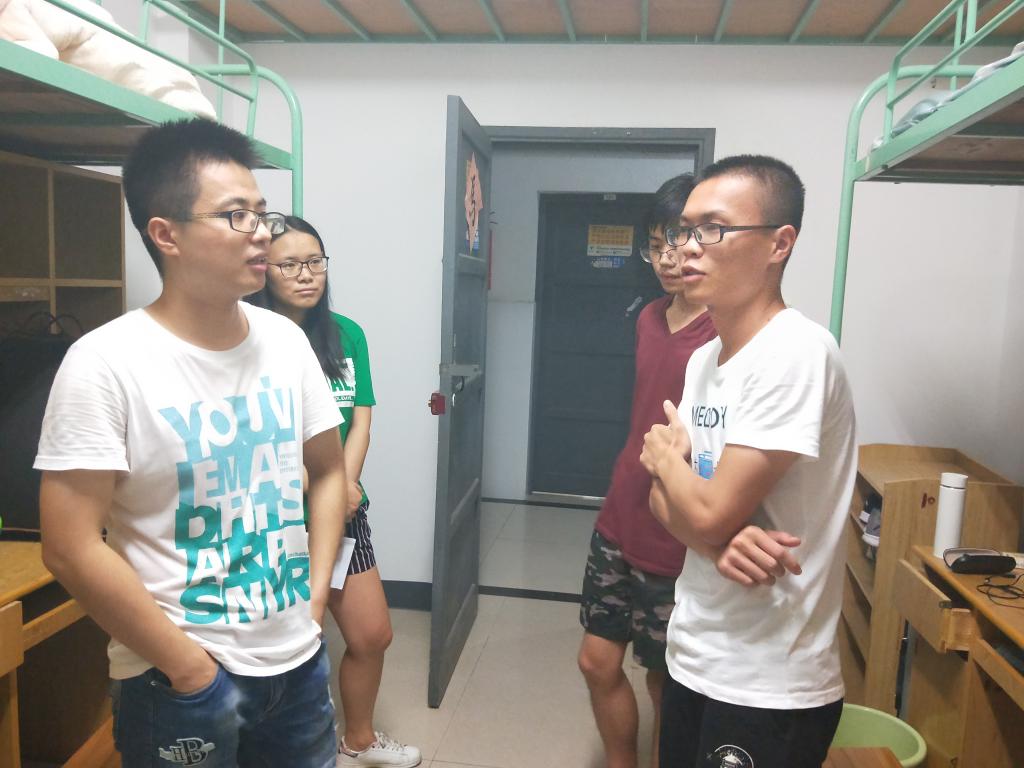 今年我院研究生新生均住在南湖校区,研会成员先后走访了女生宿舍及男生宿舍。走进新生寝室,首先确认新生们的入住情况,了解他们来到学校的住宿生活是否适应等问题;然后向新生们介绍学院研究生会情况并希望他们能积极加入到研会这个大家庭,为我院研会注入新的活力。