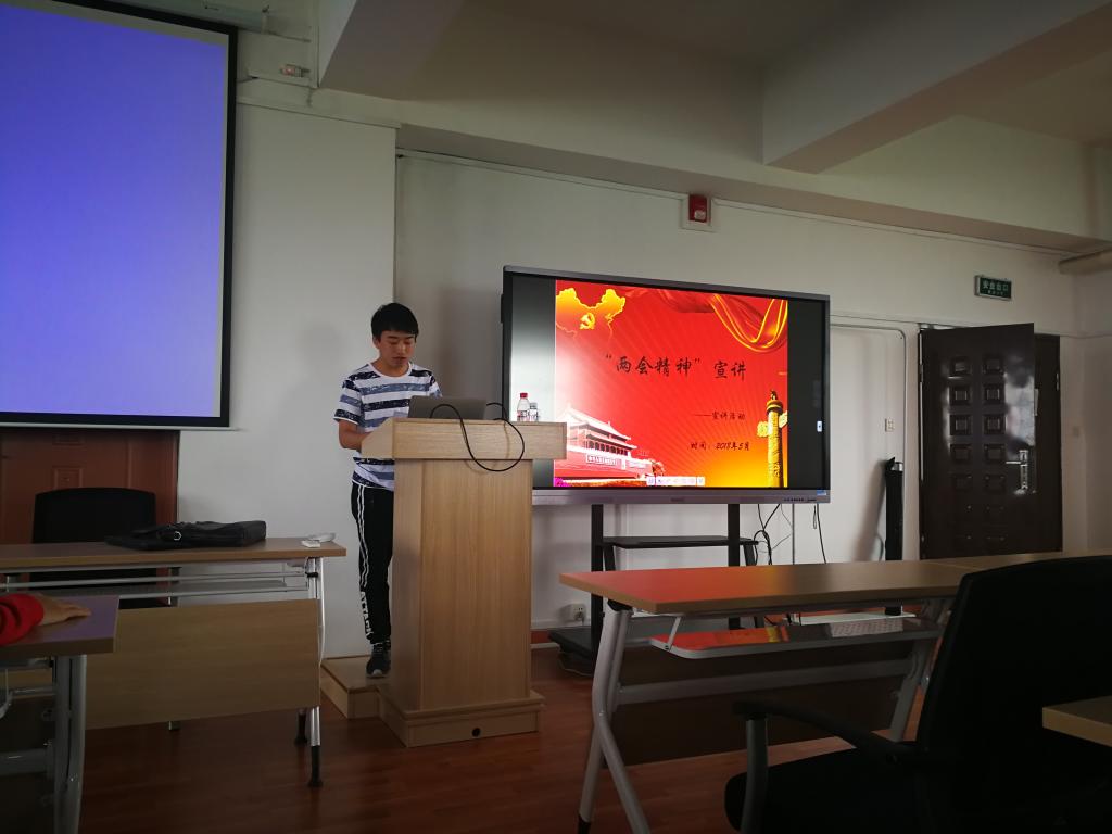 5月10日15:30,龙8-long8(头号玩家)国际唯一官方网站研究生党支部在九号楼1005报告厅开展“两会精神宣讲活动”,全体17级研究生参加宣讲活动。会议由学硕党支部书记聂银鑫主持。