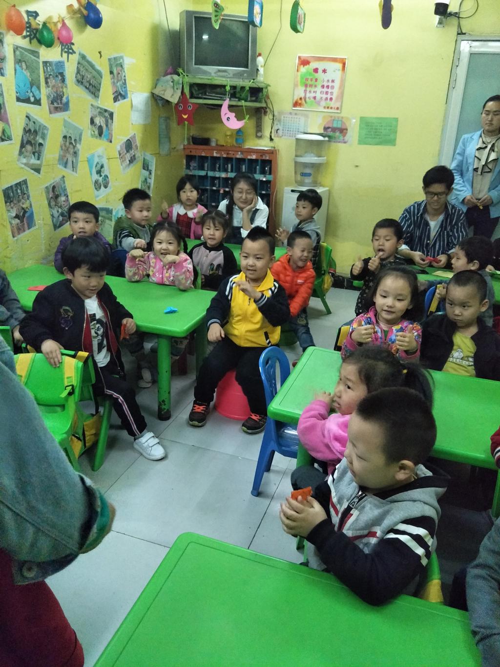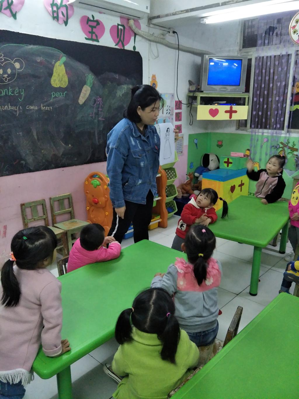 抵达幼儿园后,志愿者们进行了分班教学。志愿者们都认真的进行教学,履行自己的职责,小朋友们也认真听讲,踊跃发言。在欢声笑语中小朋友们与志愿者度过了一个充实的下午。体验了这次活动后,志愿者们也有了颇为深刻的感触:“第三次去幼儿园了,和大班的小朋友们从陌生到熟悉,看着他们能够流利地读出上一节课学习的英语单词,听到他们说“姐姐,我还记得你上次来过”,然后就会觉得特别幸福。每次做完志愿活动,自己的歌单上就会多一些儿歌,就想着哪一天把这些都教给他们,这样他们在和爸爸妈妈出去玩时,也许听到熟悉的儿歌,会想到有个姐姐曾经教过他们,并且这个姐姐真心希望他们能够“快乐的长大,迎接灿烂的未来,就像红橙黄绿蓝靛紫”。--陈佳倩