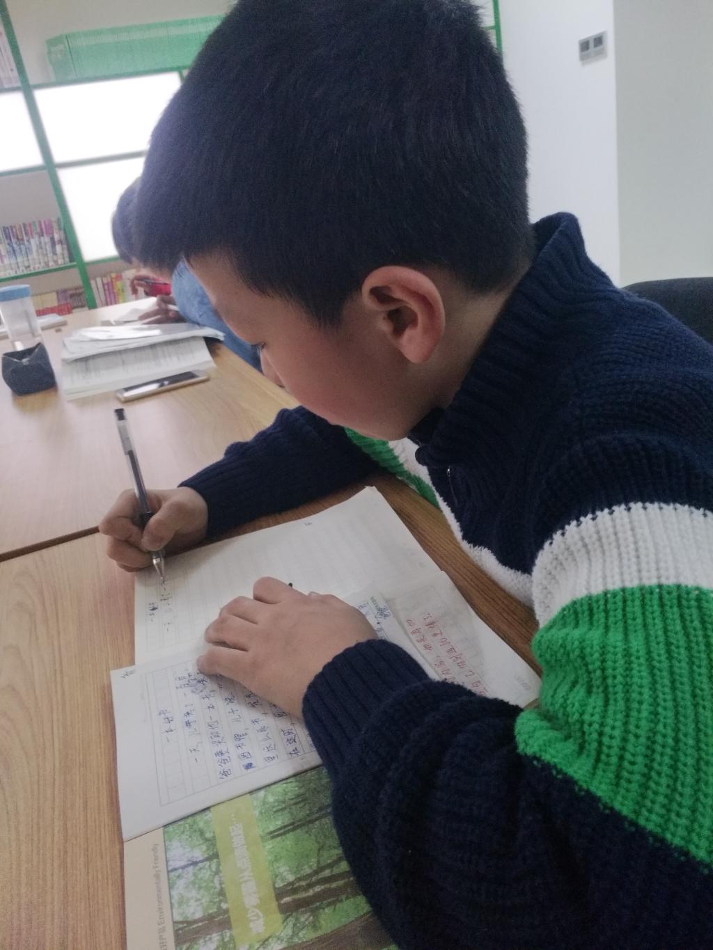 志愿者杨双阳辅导一位小朋友的作文并指出其作文还存在的缺陷。一位二年级的女孩正在做语文作业,志愿者夏乐鑫细心地为她解答她的疑惑,并检查出她作业存在的问题,告诉她错在哪儿,该怎么写对题目,下次再遇到这种题型该怎么办。 志愿者曾超勇则辅导一名男孩英语,为之解释英语句子的含义,方便其更好地理解英文对话。不久,志愿者曾超勇辅导的男孩就写完作业了,就与这名男孩还有其他写完作业的孩子们一起玩起了大富翁的游戏。