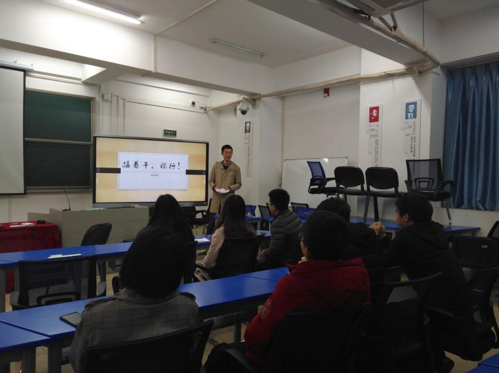 此次会议主要是研会成员工作总结和近期工作安排。研究生会副主席张陈浩首先发言,他总结了研究生会半年以来的工作情况,主要回顾了导学团队创意合影活动、校运会、十九大主题微宣讲等活动,对学院领导和辅导员蔡老师的帮助支持及研会成员的努力与付出表示敬意。