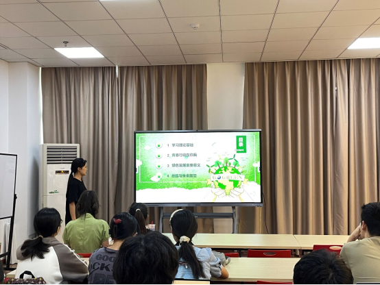 什么是绿色发展?唐诗吟首先对这个问题作出解答,从定义与目标、核心理念与主要内容三方面向同学们介绍了绿色发展的要义。根据这一理念,唐诗吟引出了习近平生态文明思想,指出“绿水青山就是金山银山”这一重要论断,阐明了生态保护和经济发展的辩证关系,为同学们进一步的行动提供了坚实的理论支撑。