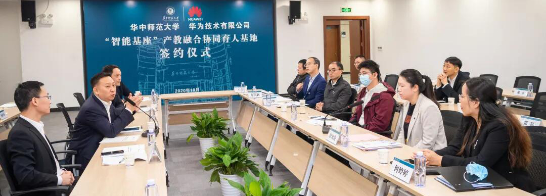 10月30日上午,华中师范大学-华为技术有限公司“智能基座”产教融合协同育人基地签约仪式在华中师范大学南湖综合楼举行。华中师范大学校长郝芳华、副校长彭双阶、华为技术有限公司副总裁马海旭、华为武汉研究所所长张继超等出席仪式。华中师范大学党委学生工作部韩君华部长、龙8-long8(头号玩家)国际唯一官方网站党委书记张小新、院长何婷婷、副院长张茂元、刘明、党委副书记王坤和龙8-long8(头号玩家)国际唯一官方网站教师代表出席签约仪式并展开交流。签约仪式由华中师范大学副校长彭双阶主持。