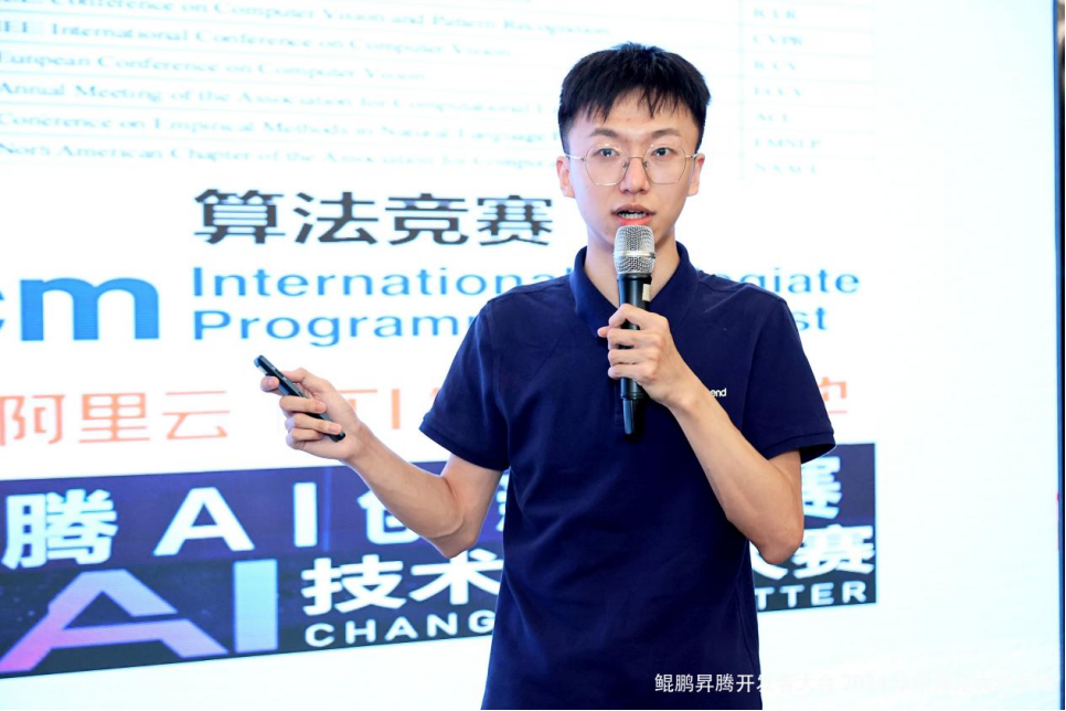 昇腾AI开发者生态总监黄志强以《携手开发者,共创数智未来》为主题,同在场师生分享了昇腾AI的开发者体系化培养计划。黄志强总监指出,昇腾AI深刻了解开发者人才对产业发展的核心动力作用,对此,昇腾AI对于开发者以及开发者社区有着坚定的承诺。他详细介绍了昇腾AI为开发者成长所设计的培养计划,包括但不限于技术培训、认证项目等。黄志强总监还分享了昇腾AI提供的资源支持,如开发者论坛、API文档、SDK工具包等,这些资源为开发者提供了丰富的学习材料和实践平台。他表示,昇腾AI始终致力于以全方位支持以助力开发者的专业技能和创新能力的全面提升。他也鼓励在场师生积极参与到昇腾AI的生态建设中,通过实践项目和社区活动,提升自己的技术实力和市场竞争力。