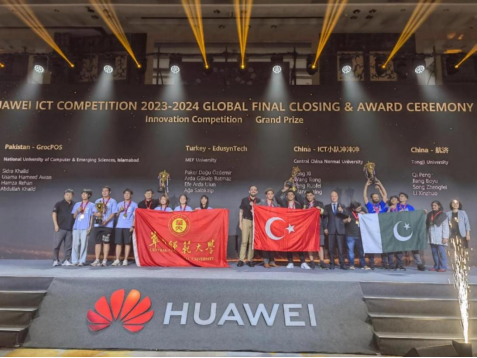 (图为学院学生获得华为ICT大赛全球特等奖)