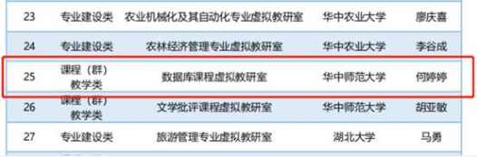 (图为《数据库课程》教育部虚拟教研室建设试点名单)