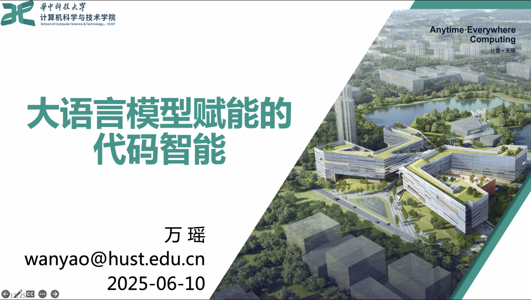 在本次报告中,万老师详细介绍了大语言模型在自然语言处理领域的快速演进及其在代码智能领域(包括代码生成、漏洞检测、类型推断等)展现出的显著能力。报告围绕大语言模型在代码智能任务中面临的多个挑战展开讨论,包括模型的可解释性、鲁棒性、知识融入机制、生成代码的版权保护与模型可复用性等关键问题,并分享了团队在上述方向的一些探索与初步成果。此外,报告还介绍了跨模态代码生成方面的研究工作,探讨如何将视觉、文本等模态信息与代码生成任务有效结合,以提升模型在真实多模态场景中的实用性与生成能力。
