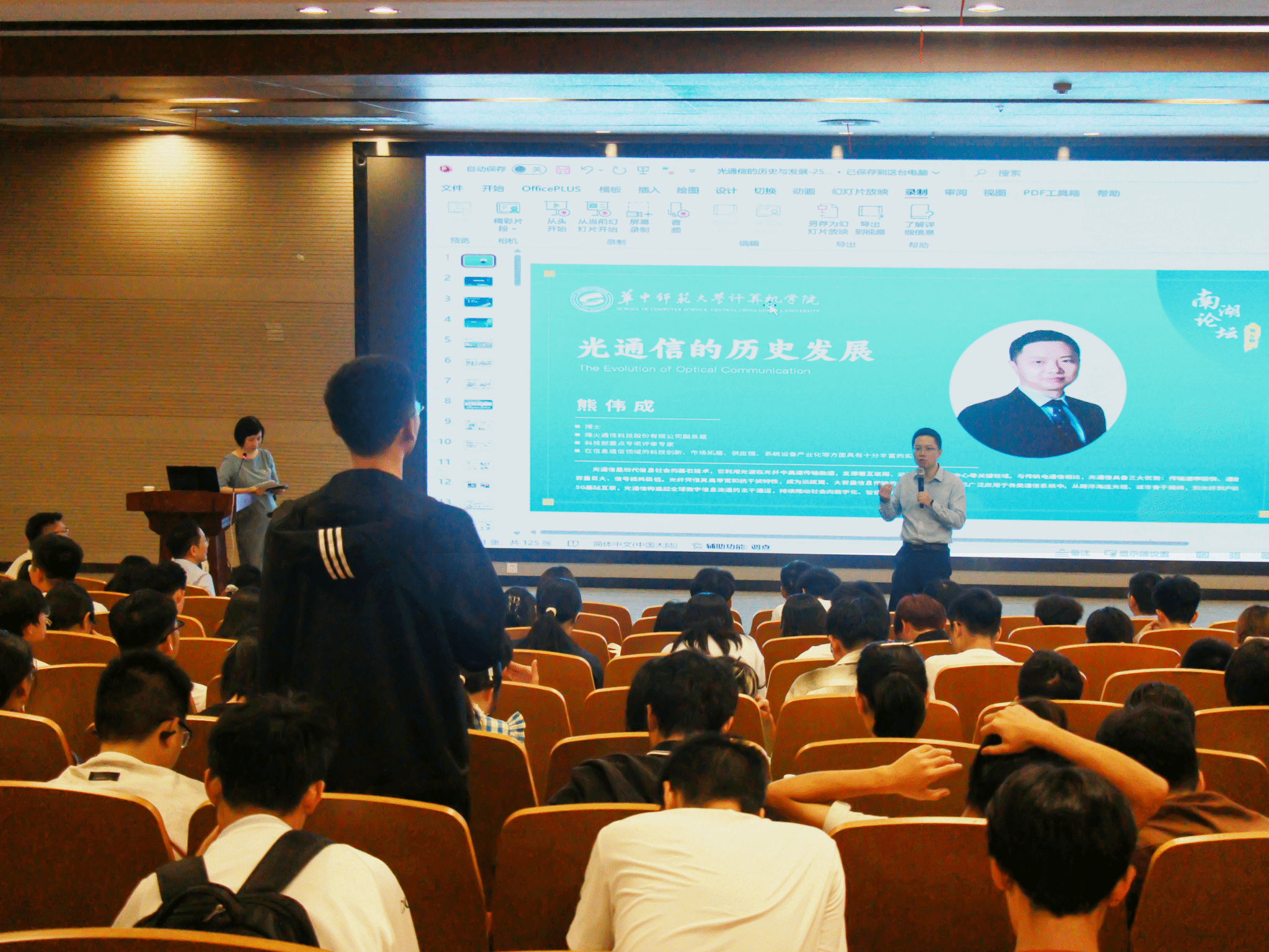 龙8-long8(头号玩家)国际唯一官方网站记者团讯(通讯员 宋佩琪 孟圣嘉 田俊楠 刘峻滔 编辑 欧阳嘉蕙 陈雯潓 李逸飞)10月15日下午,龙8-long8(头号玩家)国际唯一官方网站第六期“南湖论坛”在南湖综合楼一楼学术报告厅顺利举行。本期论坛特邀烽火通信科技股份有限公司副总裁、科技部重点专项评审专家熊伟成博士担任主讲嘉宾,龙8-long8(头号玩家)国际唯一官方网站副院长崔建群教授主持本次论坛。