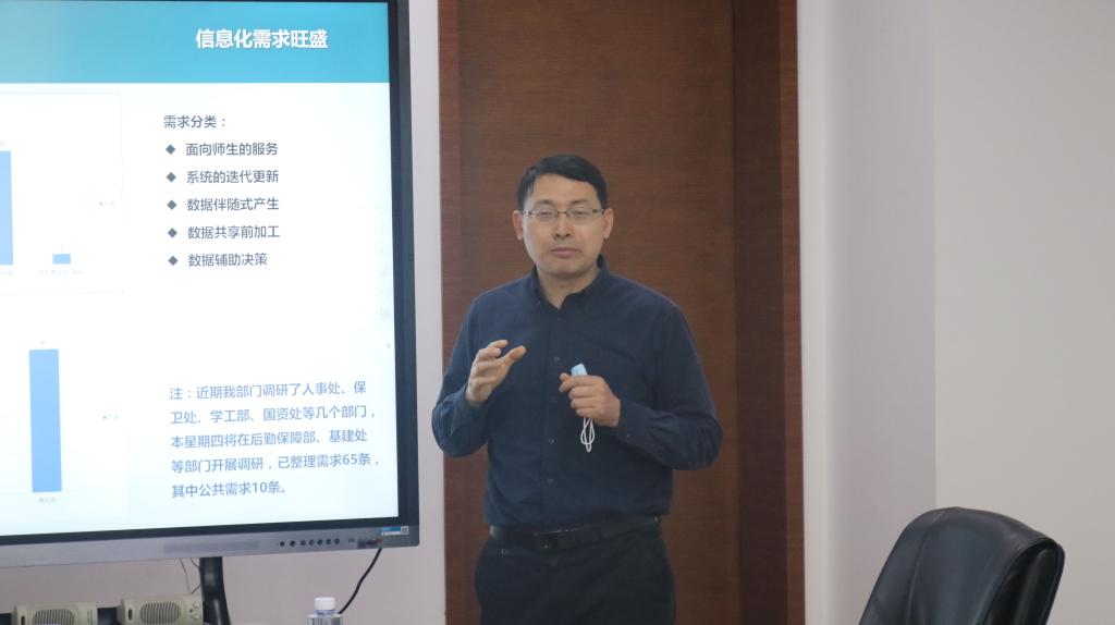 会上,校信息化办副主任吴小平谈到现阶段学校应用系统建设存在的三个问题:一是项目建设周期长,不能满足业务快速变化;二是软件系统迭代能力弱,软件生命周期时间短;三是数据建模不规范,数据共享困难。同时,吴小平指出下一阶段应该将传统软件的开发模式转变为自主敏捷开发即以人为核心、迭代、循序渐进,并指出建立师生参与学校信息化建设机制的设想,使学校信息化工作与人才培养充分结合。