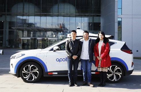 (图为体验百度Apollo无人驾驶汽车)