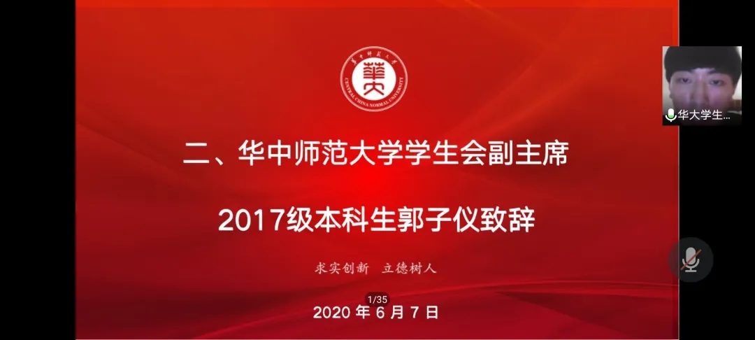 伴随着庄严的共青团之歌,本次会议拉开了序幕。首先,华中师范大学学生会副主席郭子仪进行了发言。他表示龙8-long8(头号玩家)国际唯一官方网站团委、学生会自成立以来,在青年学生思想引领工作、青年志愿服务工作、新媒体工作、学生学术科研引导工作、学生文体工作以及院校联动班团联合等方面取得了巨大的工作成果,在各类大型校级活动扮演着越来越重要的角色。同时,他也希望大家能够在团委学生会收获“师生情”、“同学情”,同时充分锻炼自身能力,不惧风雨、勇挑重担,让青春在党和人民最需要的地方绽放绚丽之花。