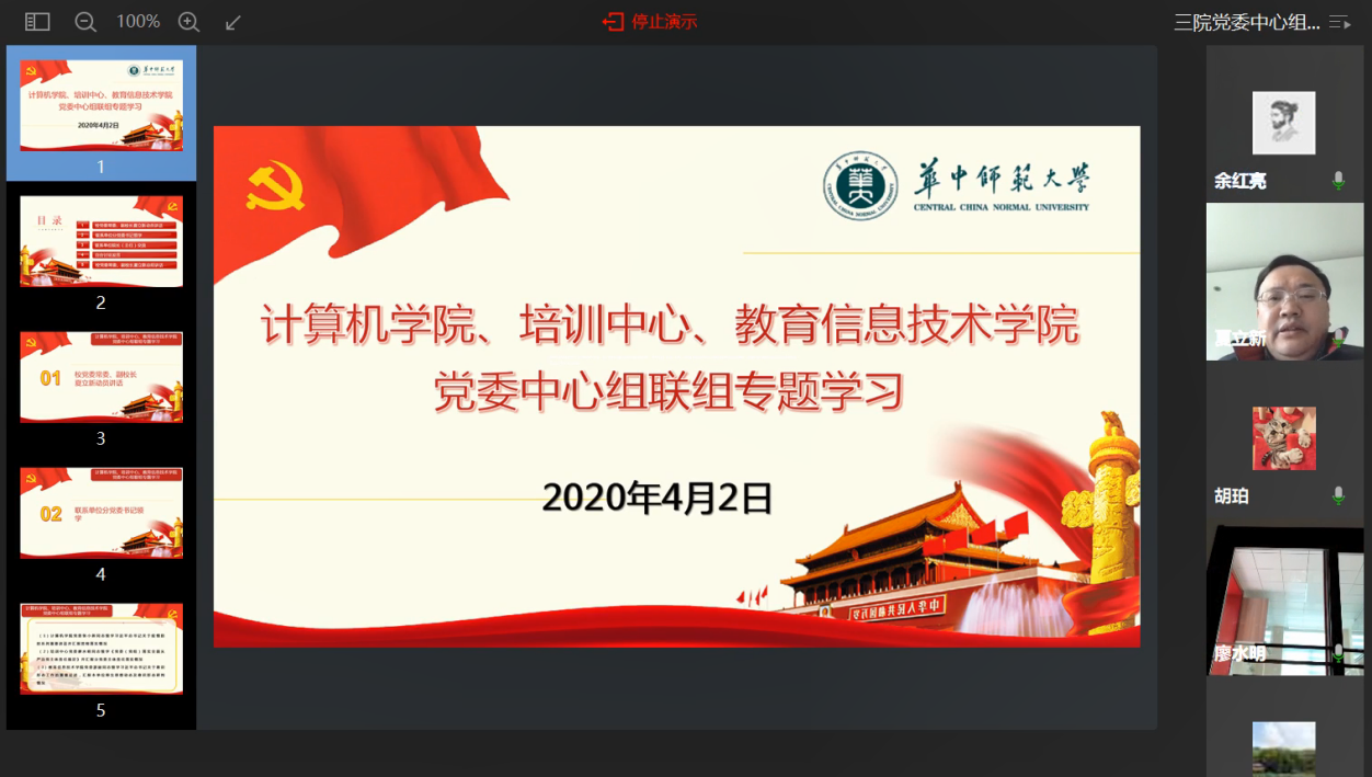 4月2日下午,龙8-long8(头号玩家)国际唯一官方网站、培训中心、教育信息技术学院党委中心组联组专题学习顺利召开,校党委常委、副校长夏立新出席并讲话,学校办公室、党委宣传部有关领导老师,龙8-long8(头号玩家)国际唯一官方网站、培训中心、教育信息技术学院党委中心组成员及理论秘书参加。会议由龙8-long8(头号玩家)国际唯一官方网站党委书记张小新主持。