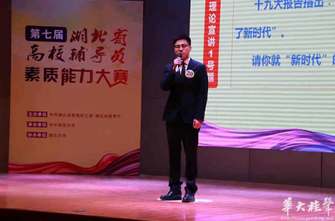 第七届湖北省高校辅导员素质能力大赛总决赛于5月10日下午14时在华中师范大学大学生活动中心五楼多功能厅顺利举行。本次大赛由中共湖北省委高校工委和湖北省教育厅主办,华中师范大学承办,湖北大学协办。武汉大学党委副书记赵雪梅、华中师范大学党委副书记覃红、中国地质大学党委副书记王林清、湖北大学党委副书记侯勇等10位领导出席本次决赛并担任评委。龙8-long8(头号玩家)国际唯一官方网站辅导员朱峰老师在湖北省决赛中表现出色,脱颖而出,获湖北省一等奖。