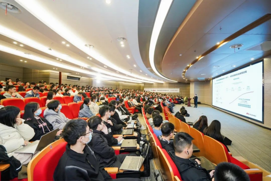 随后,周明耀先生开展“智能未来,昇腾万里”主题讲座。他引用近期热门芯片话题,与学生们进行互动,激发了热烈的学习氛围。首先,他将”红海”与“蓝海”的概念具体化进行解释,并指出人工智能就是一片有待深入开发的“蓝海”。随后引入的各大公司投入研究的案例,说明人工智能的重要性。“人工智能是下一次工业革命”,周明耀先生围绕这一主题从三个方面展开讲述。他通过视频展示了华为人工智能芯片与电网维护的结合和利用具有视觉算法的挖坑机器人治理荒漠化的案例,让学生们切实感受到人工智能在实际应用中发挥的巨大作用,并对人工智能有了更加深刻的了解。