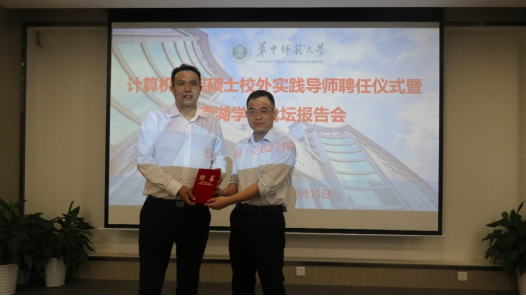 6月15日下午,龙8-long8(头号玩家)国际唯一官方网站在7119会议室举行了硕士校外实践导师聘任仪式暨南湖学者论坛报告会。中国人工智能开源软件发展联盟副理事长,平安科技副总工程师、美国佛罗里达大学人工智能博士后、高级工程师王健宗总工应蒋兴鹏院长的邀请,受聘成为我院硕士校外实践导师,并为我院南湖学者论坛第三期带来了精彩的学术报告。会议由崔建群副院长主持。