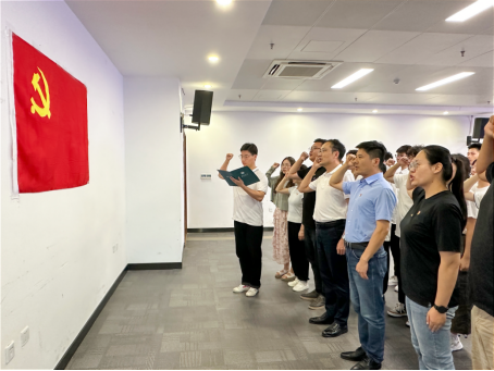 在学院研究生专硕第一党支部新党员尤子卿的领誓下,全体与会党员举起右拳,面向党旗庄严宣誓。在铿锵有力的誓言声中,与会党员进一步坚定了理想信念,表达了对党忠诚的决心。
