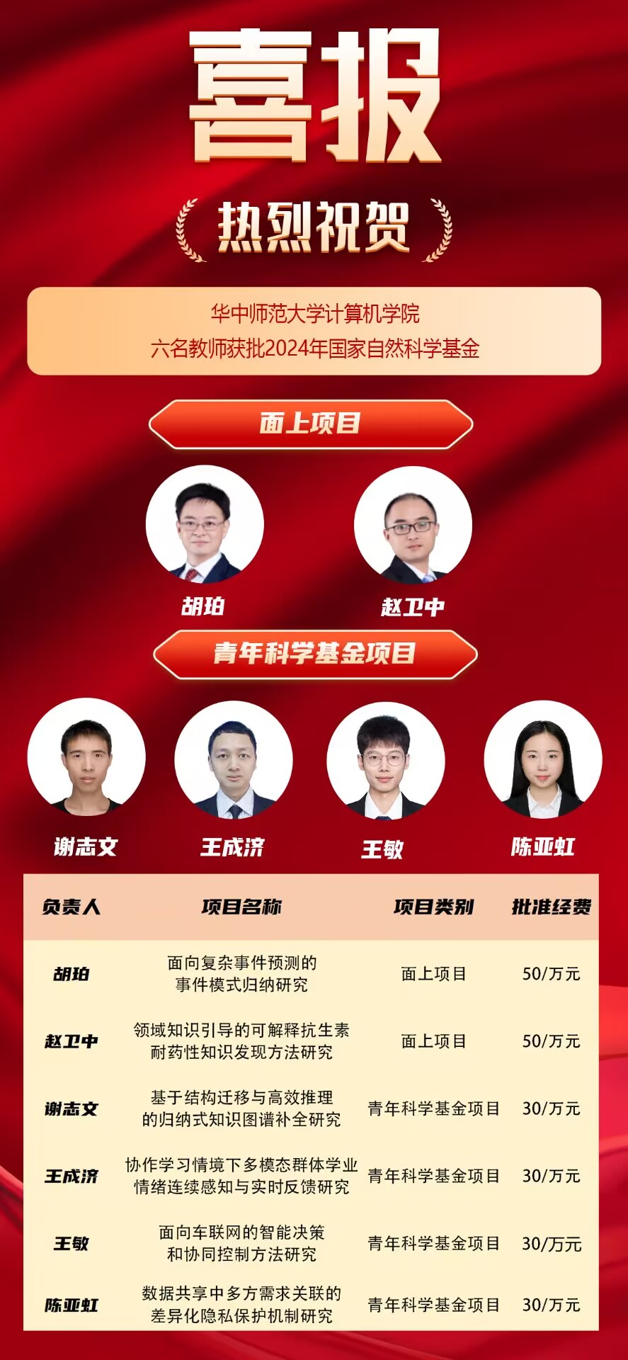 胡珀教授以《面向复杂事件预测的事件模式归纳研究》项目获批国家自然科学基金面上项目。