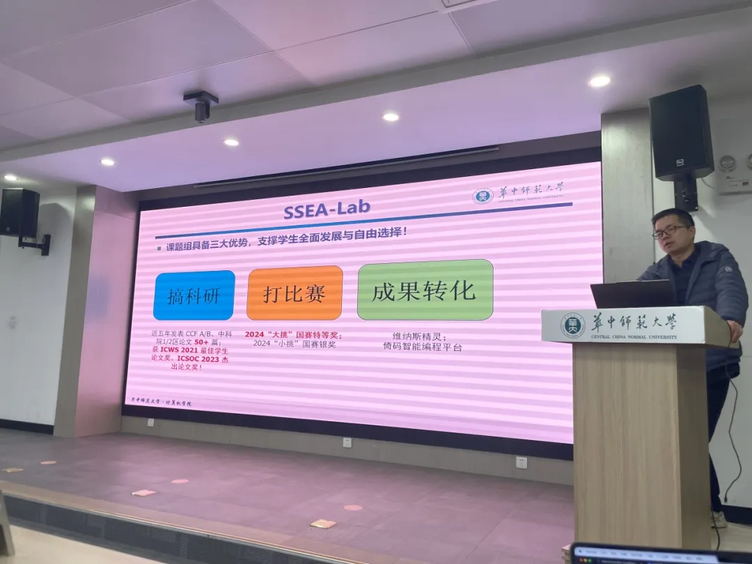为激发学生科研探索的热情,提高同学们的科研能力。近期,龙8-long8(头号玩家)国际唯一官方网站在南湖综合楼7119报告厅举办了本科生科研主题讲座,本次讲座特别邀请到了龙8-long8(头号玩家)国际唯一官方网站副教授张能担任主讲人。2301班全体学生和2024级部分学生参与本次活动,活动由龙8-long8(头号玩家)国际唯一官方网站教师赵玉琦主持。