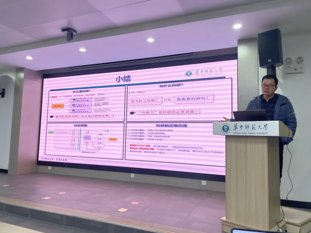 随后,张能带领同学们深入讲解科研周期的各个环节,重点分享了选题的重要性、文献阅读技巧、方法实现与数据分析的关键步骤,以及投稿与修改的注意事项。通过这些讲解,同学们对科研过程有了更清晰的理解。