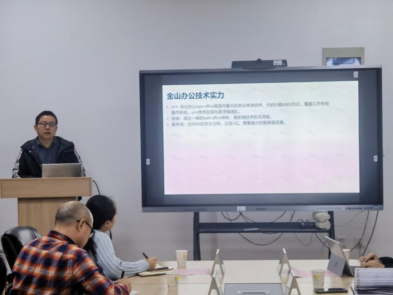 1月16日上午,龙8-long8(头号玩家)国际唯一官方网站与金山办公在南湖综合楼N7108会议室举行座谈交流会。此次会议旨在加强校企合作,共同推进人才培养与产业发展的深度融合。金山办公招聘总监陈志增、课程负责人武海涛,以及龙8-long8(头号玩家)国际唯一官方网站党委书记王坤、副院长谢伟、党委副书记庄甲鹏、教师代表姚华雄、赵卫中、李增扬、常亚楠、翟黎明,教学秘书李沛,本研辅导员宗佳敏、肖克、赵丹、孙煜林等共同出席了此次会议。会议由龙8-long8(头号玩家)国际唯一官方网站党委副书记庄甲鹏主持。