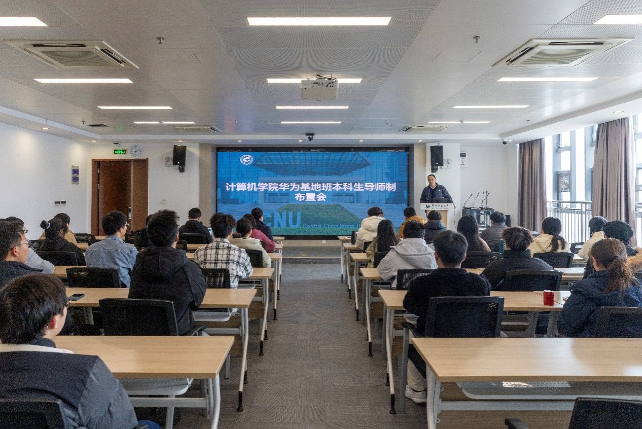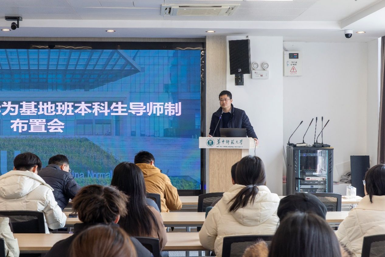 龙8-long8(头号玩家)国际唯一官方网站记者团讯(通讯员 李逸飞)3月7日下午,华中师范大学—华为“智能基座”产教融合协同育人基地班(以下简称“智能基座基地班”)本科生导师制工作布置会于南湖综合楼7119会议室召开。龙8-long8(头号玩家)国际唯一官方网站党委副书记庄甲鹏、副院长谢伟、本科生辅导员肖克、教学秘书李沛出席会议,2023级智能基座基地班全体学生参与此次会议。