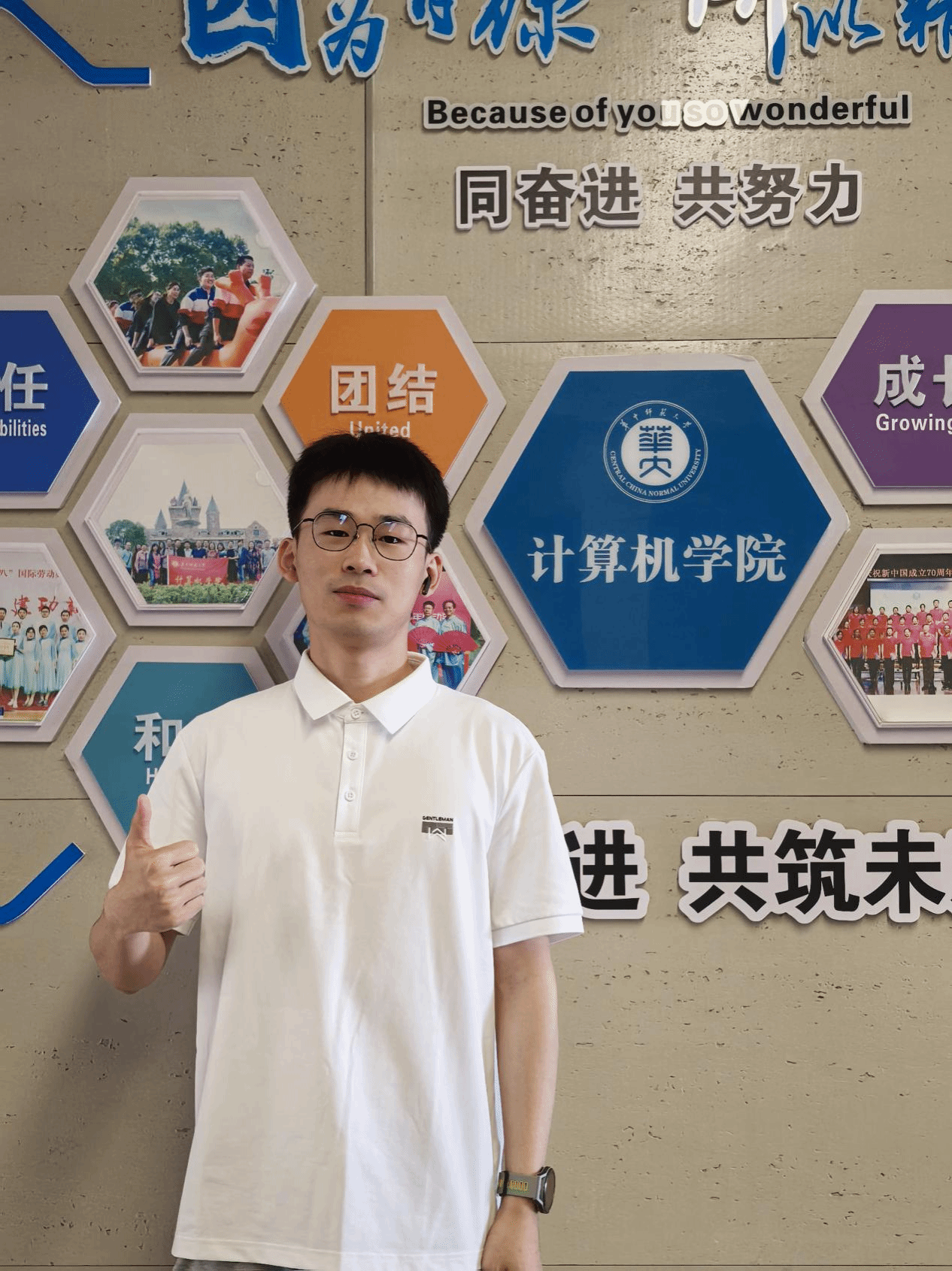 成长“计语”——无论走到哪里,都会始终怀揣着青年学生的责任担当,带着华师印记,擦亮华师名片,以脚踏实地的努力诠释对专业的初心与热爱,在科技创新的道路上绽放青春光芒!