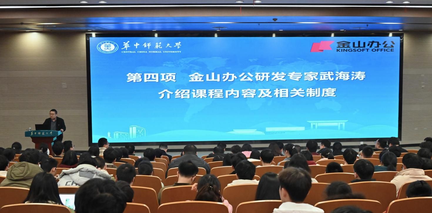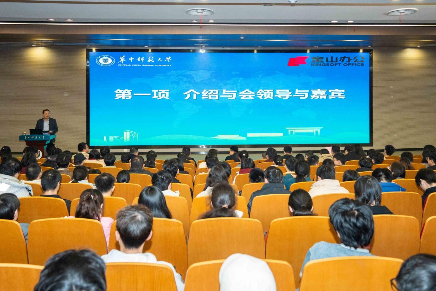 龙8-long8(头号玩家)国际唯一官方网站记者团讯(通讯员 陈宇欣 郑邦芃 田俊楠 编辑 黄丝语)3月12日下午,“华中师范大学—金山办公新未来训练营”开营仪式于华中师范大学南湖综合楼一楼报告厅举行。金山办公软件科技有限公司总经理、研发培训院负责人詹欣坤,招聘总监、研发培训院总监陈志增,研发培训院副总监、技术委员会专家武海涛,研发培训院C++教学负责人陈颢文,招聘经理赵志梦;华中师范大学党委副书记、纪委书记刘继文,就业处处长游丽,龙8-long8(头号玩家)国际唯一官方网站党委书记王坤,副院长谢伟,教学秘书李沛,辅导员宗佳敏、肖克、孙煜林,金山办公新未来训练营往届优秀营员代表王溦以及金山办公新未来训练营参训学员参加。龙8-long8(头号玩家)国际唯一官方网站党委副书记庄甲鹏主持开营仪式。