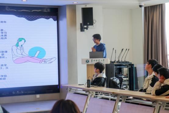 李沛首先强调了学业学分的重要性,从必修课和选修课两方面提出选课建议。此外,他详细介绍了学院实训内容、实习安排以及相关竞赛,并大家积极参加竞赛积累自己的相关经验。