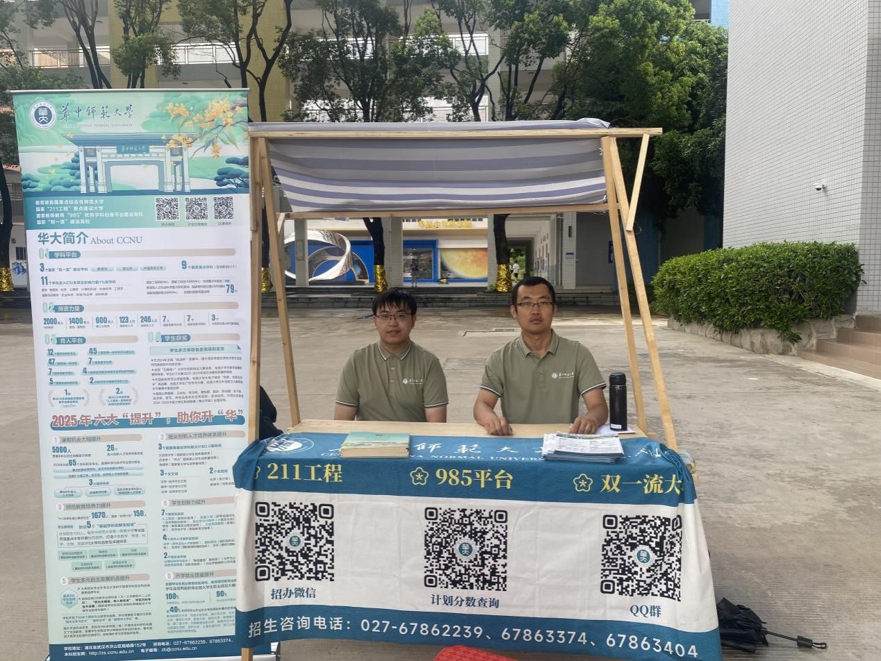 郑世珏、杨青等师生分别深入东莞中学、东莞一中、东莞市东华中学、深圳中学、深圳外国语学校、深圳第二外国语学校、深圳高级中学、深圳红岭中学、深圳龙城高级中学、深圳盐田高级中学、惠州一中、江门一中、珠海一中、佛山市顺德一中、佛山市石门中学、中山一中、中山华辰实验中学、中山纪念中学、中山华侨中学,宣讲华师招生政策,解答师生疑问。