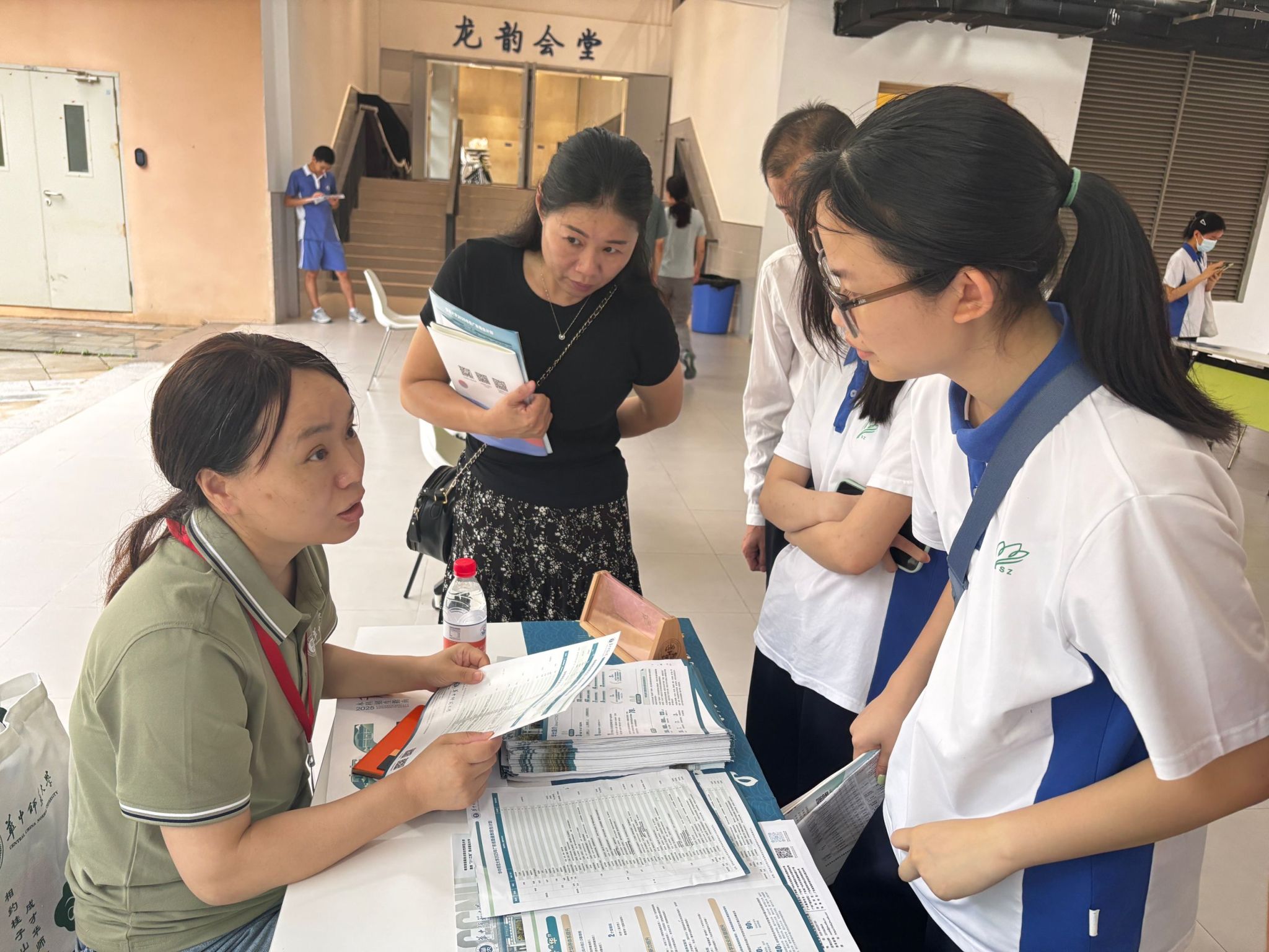 王坤、谢伟在东莞中学看望校友并向现场咨询的学生及家长