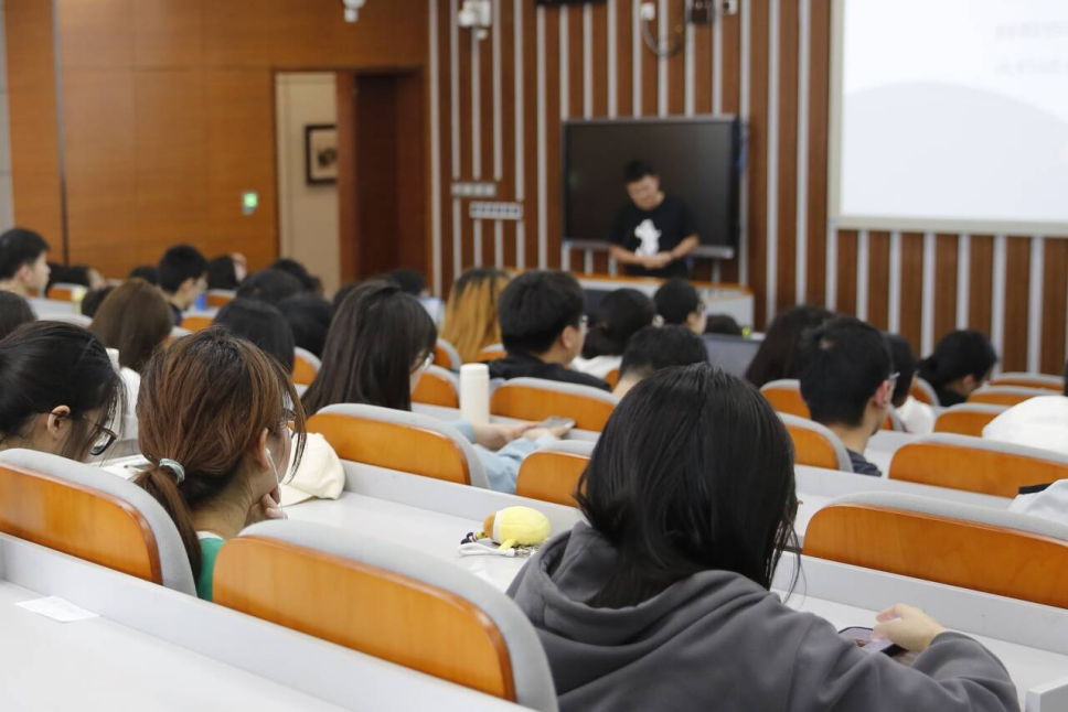 刘宇乐从个人生涯规划的变化过程出发,帮助同学们梳理未来发展方向,明确发展目标。他从前期的简历投递、项目的经验积累、面试的提前准备以及最后信息的确认等方面系统地介绍了求职的全过程,提醒同学们在求职过程中要适时调整求职策略与方向。他着重向同学们强调了简历的撰写与投递,并现场展示了自己的简历排版,分析简历的组成部分。