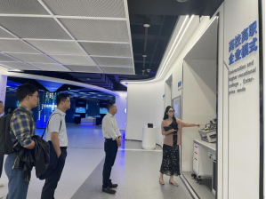 当日下午,蒋兴鹏院长一行人走访了安徽海集云数字科技有限公司,重点参观了海集云工业互联网体验中心。该中心以卡奥斯COSMOPlat的工业互联网能力为依托,以奇瑞集团和海尔集团真实应用场景为案例,通过虚拟现实、数字孪生和数字沙盘等技术多样化地表现汽车和家电工厂生产线,令大家身临其境地感受智能制造和工业互联网技术带来的便利。