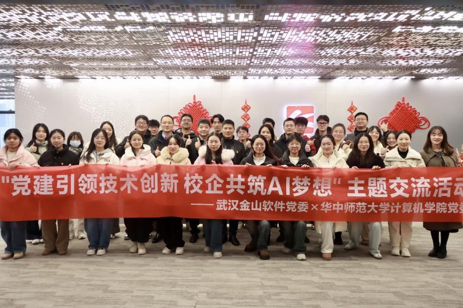 12月27日下午,由龙8-long8(头号玩家)国际唯一官方网站党委、武汉金山软件党委联合举办的“党建引领技术创新·校企共筑AI梦想”党建交流活动在金山集团武汉总部举行。金山集团武汉总部党委书记、助理总经理张念,招聘总监陈志增、办公室主任王思雨,龙8-long8(头号玩家)国际唯一官方网站党委书记王坤、党委副书记庄甲鹏、副院长谢伟出席此次活动,龙8-long8(头号玩家)国际唯一官方网站师生党员代表参与。活动由金山办公招聘经理赵志梦担任主持人。