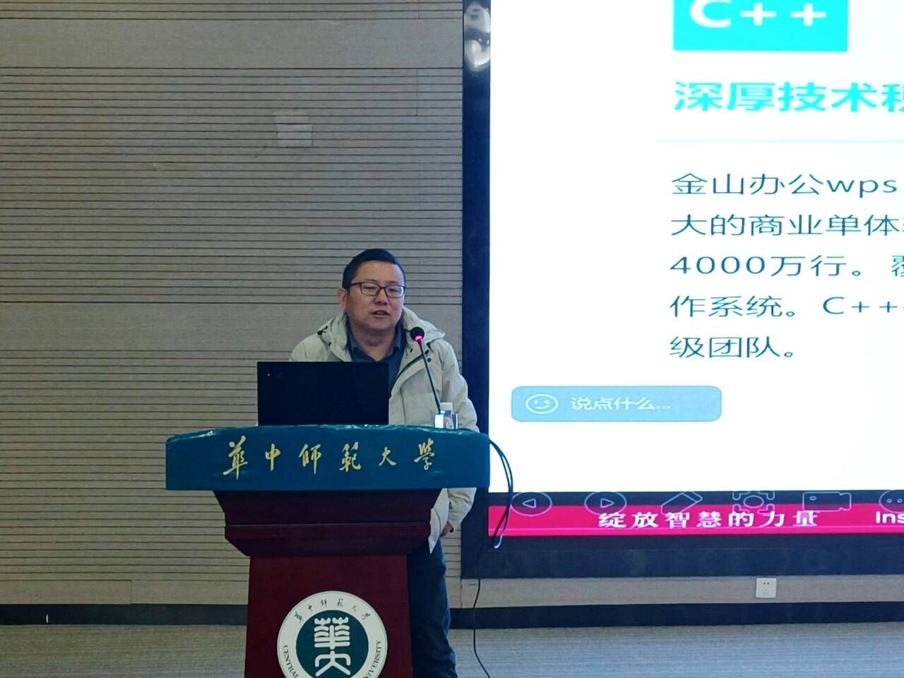 庄甲鹏向同学们介绍了学院近年来在实习实训安排方面所采取的持续优化措施,并分析了本科生升学情况。他表示,针对学生不同发展需求,学院将继续实施分层分类指导:意向考研学生可于研考结束后参与集中实习,意向就业学生则可根据职业规划,尽早参与实习,积累实践经验。他强调,金山办公作为国内领先的办公软件企业,技术实力雄厚,人才培养优势突出,希望同学们可以通过参加此次训练营提升就业竞争力。